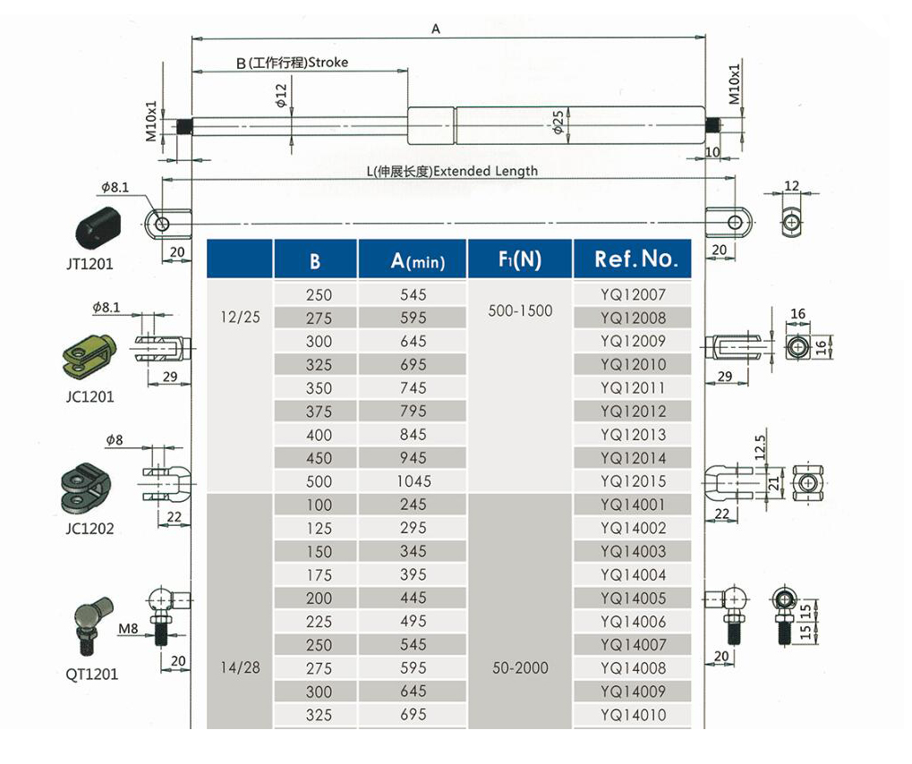 注:由于氣彈簧是非標(biāo)準(zhǔn)的,以上僅為型號的一部分。我們可以根據(jù)客戶的要求定制。