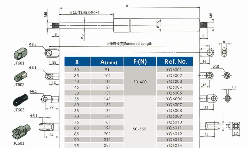 注:由于氣彈簧是非標準的,以上僅為型號的一部分。我們可以根據(jù)客戶的要求定制。