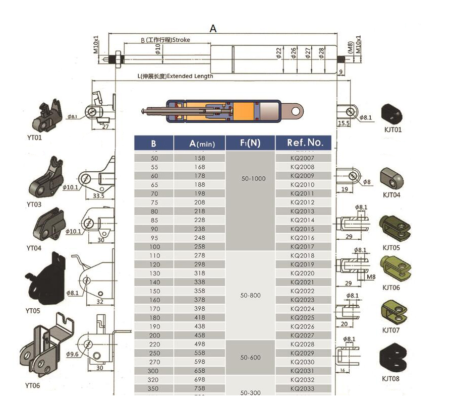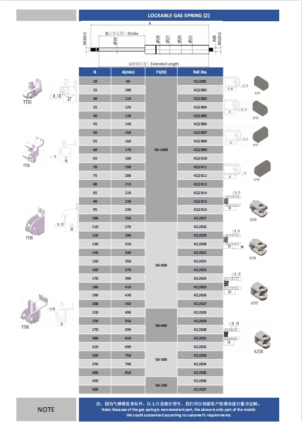 注:由于氣彈簧是非標(biāo)準(zhǔn)的,以上僅為型號的一部分。我們可以根據(jù)客戶的要求定制。