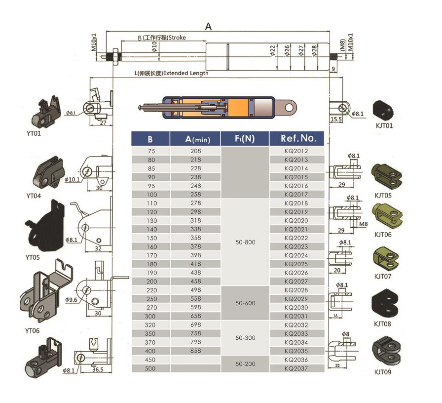 注:由于氣彈簧是非標準的,以上僅為型號的一部分。我們可以根據(jù)客戶的要求定制。