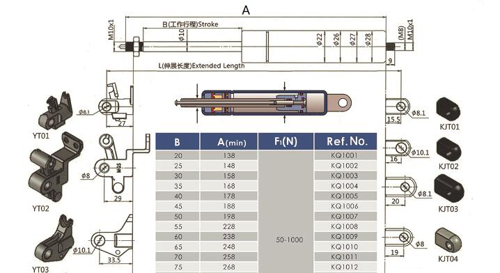 注:由于氣彈簧是非標(biāo)準(zhǔn)的,以上僅為型號(hào)的一部分。我們可以根據(jù)客戶的要求定制。